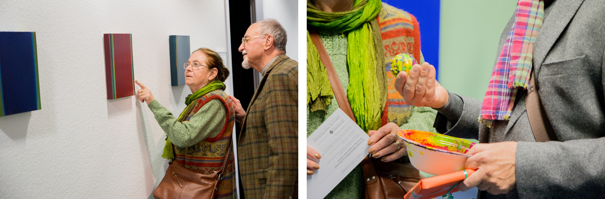 Der gebürtige Ettlinger spielt schon seit den siebziger Jahren eine wichtige Rolle in der Kunstszene Süddeutschlands und ist auch über die Ländergrenzen hinaus für seine farbintensiven Kunstwerke bekannt. Unermüdlich erforscht Harald Huss die Möglichkeiten des Materials und versucht, Grenzen der Malerei neu zu definieren. Dabei trägt der Künstler in seinem Nürtinger Atelier bis zu 70 Schichten Farbe, Firnis oder Lack auf anspruchsvolle Werkstoffe wie Alu-Dibond, Zedernholz, Büttenpapier oder Plexiglas auf. Wie die Teilnehmer der Insight-Veranstaltung erfuhren, arbeitet Harald Huss aufgrund der langen Trocknungszeiten der vielen Farbschichten häufig sogar an mehreren Werken gleichzeitig. Wenn er dabei ungeduldig wird, beschleunigt er den Trocknungsprozess auch gerne einmal mit einem Fön.