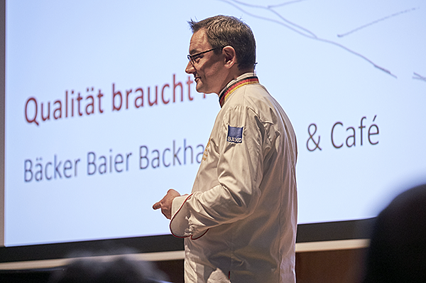 Kein Trick, sondern harte Arbeit war es, ehe Jochen Baier aus dem Herrenberger Teilort Gültstein aus der elterlichen Bäckerei Baier einen Betrieb geformt hat, der seinesgleichen sucht und vielfach ausgezeichnet ist: Landespreis des Landes Baden-Württemberg, Top Gründerpreis des Handwerks oder Marktkieker – der Oskar der Bäckerszene. „Ich glaube an unser Handwerk. Mein Ziel war es nach der Übernahme des Betriebs von meinen Eltern, das beste Brot mit den besten Bäckern unter den besten Arbeitsbedingungen zu backen“, sagt Jochen Baier, dessen humorvoller und informativer Vortrag das Publikum begeisterte.
