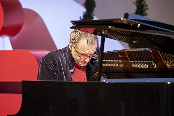 Der außergewöhnliche Pianist Joe Meixner begleitete das Publikum am Bösendorfer Flügel durch den Abend. Meixner hat piano medicine entwickelt, medizinische Musik zur Tiefenentspannung. Die von ihm komponierte Klaviermusik harmonisiert den Blutdruck, den Atemrhythmus und die Pulsfrequenz, das Immunsystem wird gestärkt. Am Montag eröffnete Meixner den Abend mit klassischen Tönen, er spielte ein Werk des französischen Komponisten Claude Debussy.
