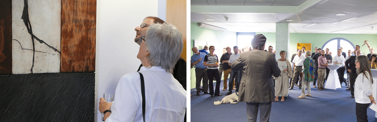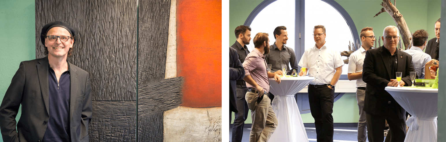 Bei der äußerst gut besuchten Ausstellungseröffnung konnten die Besucher mit dem Künstler direkt ins Gespräch kommen. Während einer Tour durchs Haus konnten sie zudem seine Werke genau inspizieren. Sie sind über mehrere Wochen hinweg in den Gängen der STAR COOPERATION ausgestellt und können dort auch erstanden werden. Mit leckerem Fingerfood und einem kühlen Getränk ließen die Besucher die Besichtigung kulinarisch ausklingen. Vor dem Hintergrund der faszinierenden Kunst ergab sich dabei reichlich Gelegenheit zu angeregten Gesprächen.