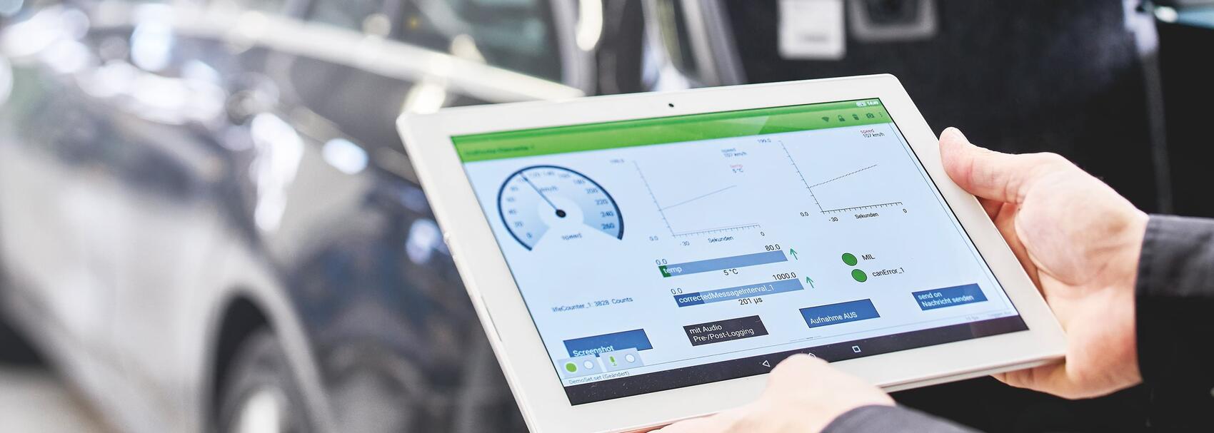Analyzing bus data has never been so user-friendly. With our Can Bus Analyzer software, you can quickly and easily view CAN, LIN or FlexRay data on a smartphone or tablet. The high-definition touch-screens of mobile devices are perfect for displaying the required signals. Via Bluetooth or Wifi, you can wirelessly connect a matching bus interface to your mobile device and evaluate your data on it. The system is quick to set up and intuitive to use, even for beginners. You can very quickly create and save your own display sets.